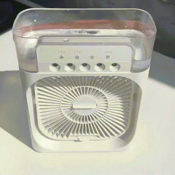 Disfruta de un ambiente fresco en cualquier lugar con este ventilador portátil 3 en 1. Con su sistema de enfriamiento por agua, múltiples velocidades y luz LED integrada, es el aliado perfecto para combatir el calor en casa, la oficina o durante viajes.
